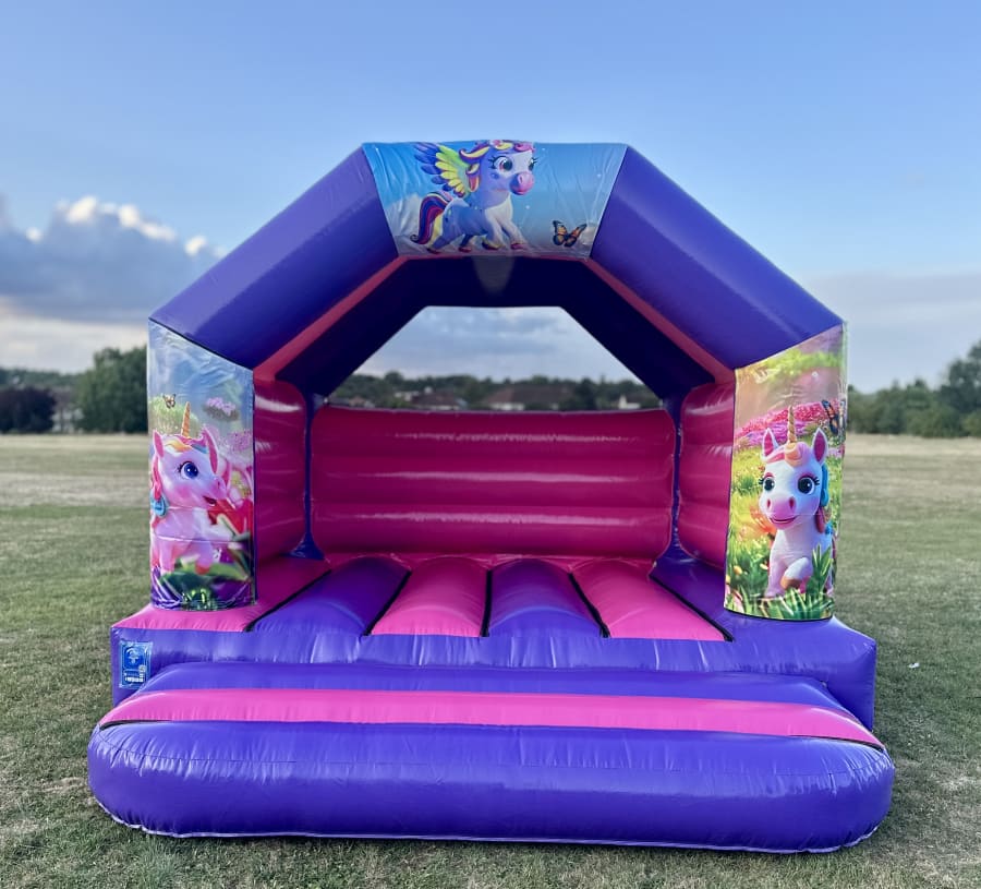 Step into a world of rainbows and imagination with The Unicorn Kingdom – a 12x12ft unicorn-themed bouncy castle designed to bring fairytales to life. Featuring beautiful pink and purple colours, vibrant artwork, and a fully-roofed A-frame design, this inflatable is a party favourite for unicorn lovers across South East London.