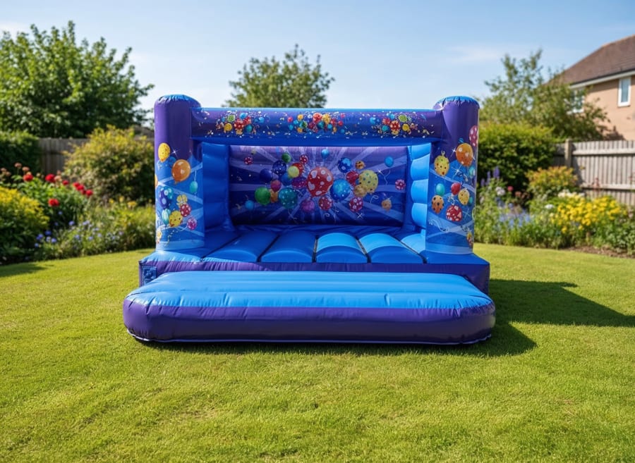 Bright, bold, and bursting with balloons our Celebration Bouncy Castle is the perfect all-rounder for any children’s party! With a fun balloon-and-confetti theme, striking blue and purple colours, and a spacious bounce area, this castle suits any occasion from birthdays to school fairs.