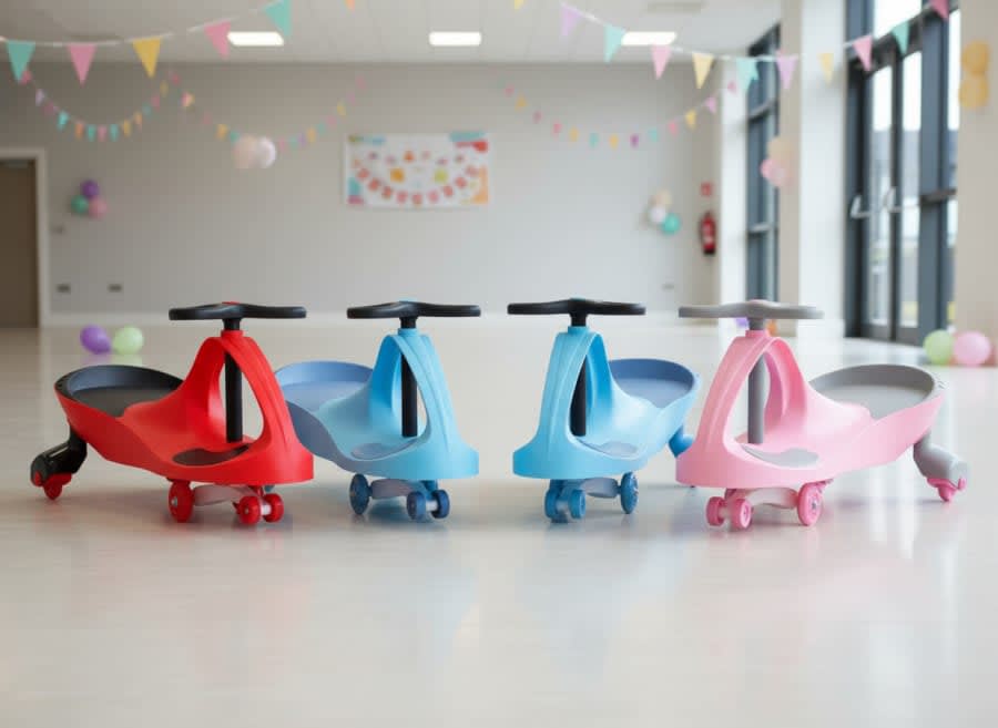 These self-propelled ride-on cars require no pedals or batteries children simply twist the steering wheel to glide forward.