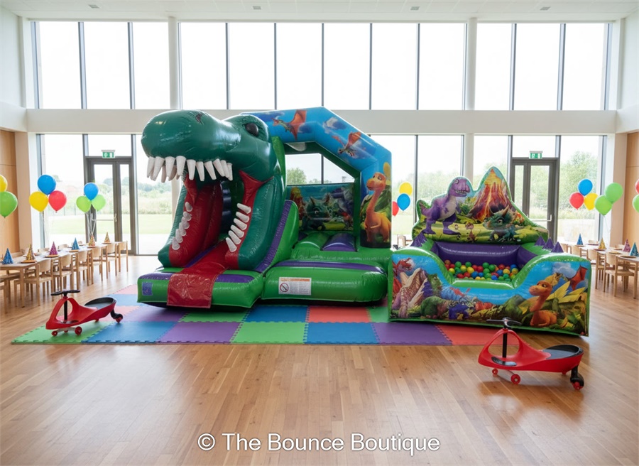 The impressive dinosaur castle with its roaring 3D design instantly becomes the centrepiece of the party, while the colourful ball pit and ride-on bikes give children even more ways to play, explore and burn off energy. It’s the perfect choice for little adventurers who love dinosaurs and big, exciting party themes.